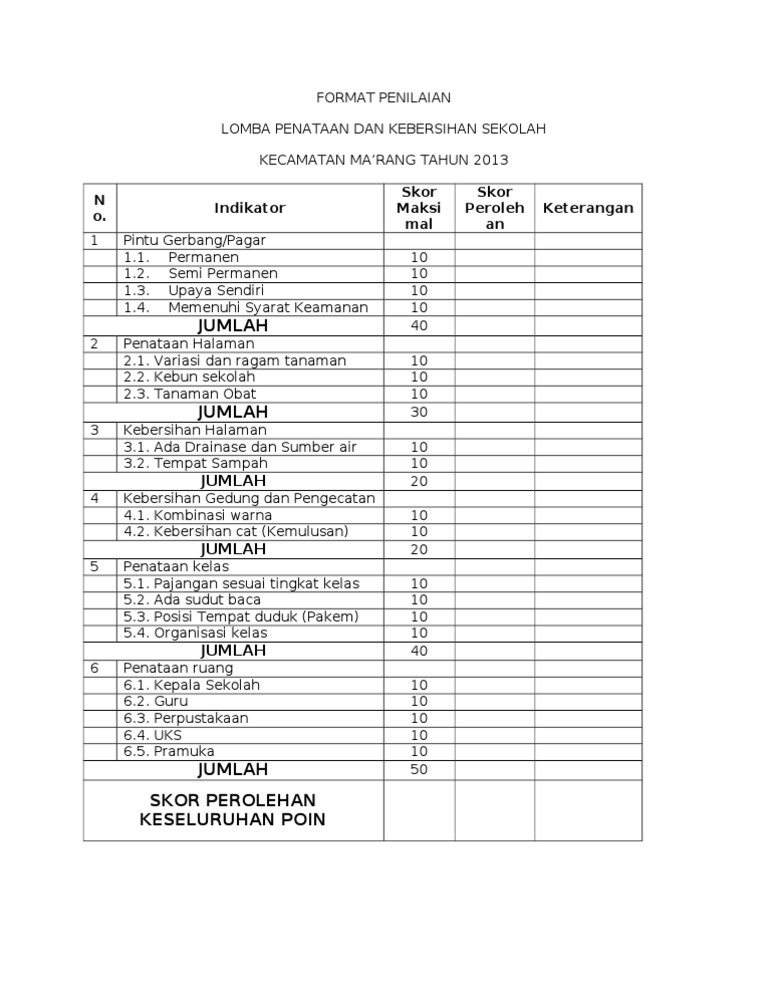 Format Penilaian Kebersihan Sekolah Pdf