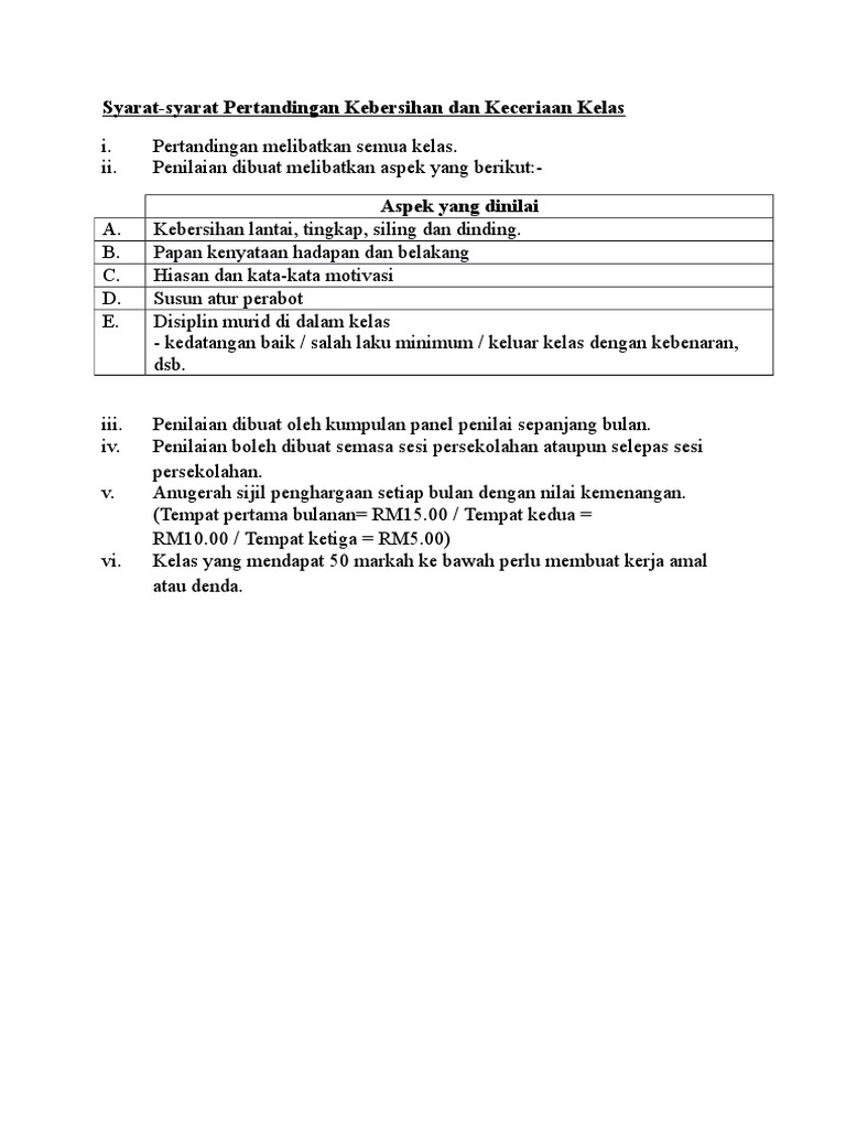Syarat Dan Borang Pertandingan Kebersihan Dan Keceriaan Kelas Pdf