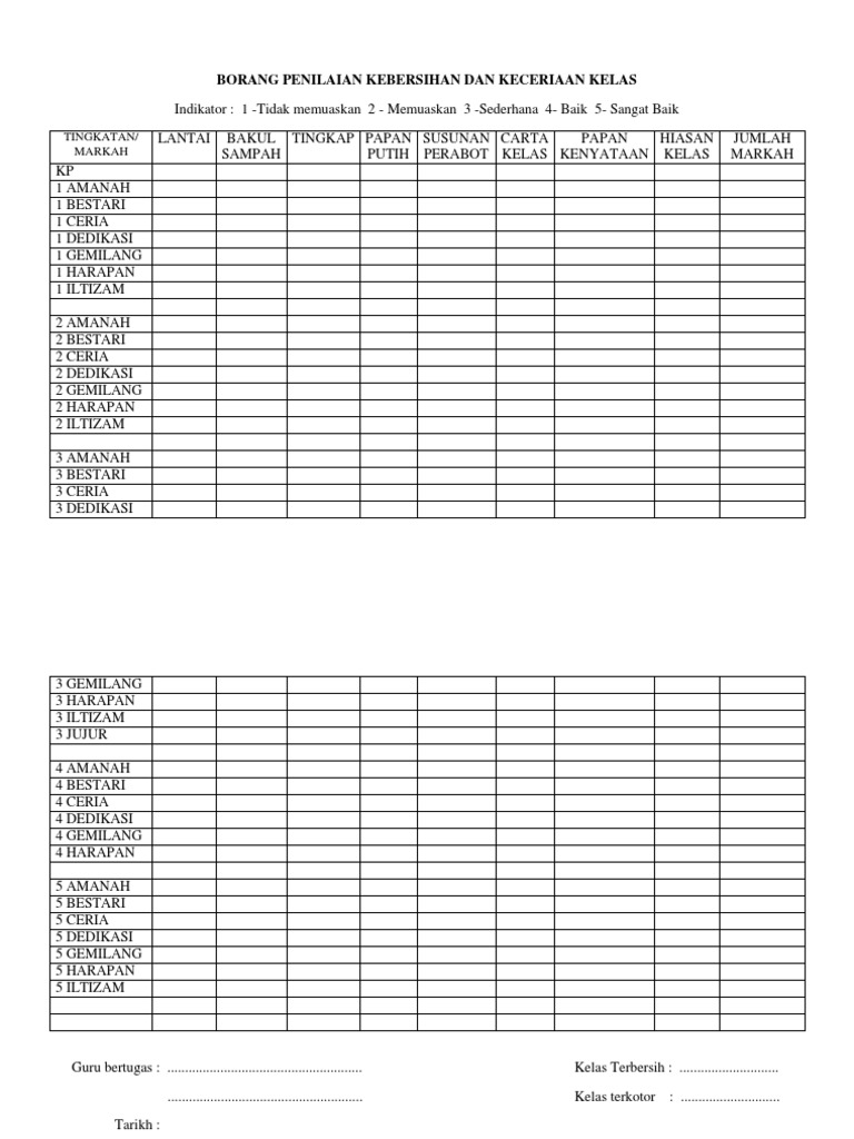 Borang Penilaian Kebersihan Dan Keceriaan Kelas Pdf